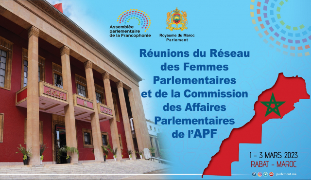 يحتضن البرلمان المغربي يومي 01 و 02 مارس 2023 بمقر البرلمان بالرباط، أشغال شبكة النساء البرلمانيات ولجنة الشؤون البرلمانية التابعتين للجمعية البرلمانية للفرانكفونية.